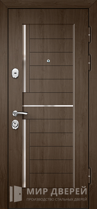 Эта входная дверь, выполненная с использованием МДФ ПВХ и предназначенная для установки в частных домах, квартирах и офисах, сочетает в себе надежность и стиль. Благодаря профильной трубе 50х25 мм в качестве каркаса и полотна, а также металлическому листу толщиной 2 мм, дверь обеспечивает повышенную безопасность. Профильные трубы 40х25 мм укрепляют конструкцию, делая её более жесткой и устойчивой к деформации.