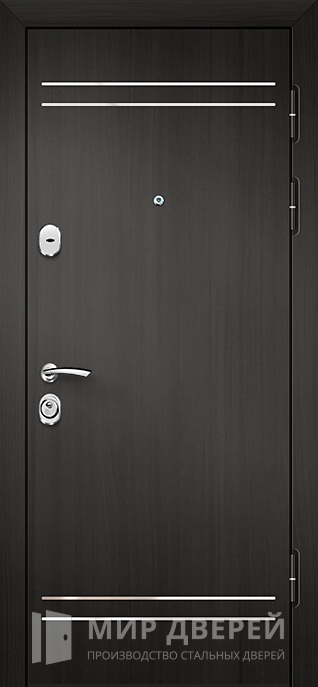 Входная дверь в квартиру с шумоизоляцией №307 представляет собой идеальный выбор для тех, кто ищет надежность и конфиденциальность в частном доме, квартире или офисе. Она оборудована ламинированными панелями МДФ снаружи и плитами МДФ внутри, окрашенными в насыщенные темные тона, что придает двери солидный и респектабельный вид.