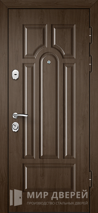 Распашная дверь из шпона с зеркальной вставкой предназначена для установки в частных домах, квартирах и офисах. Внешняя отделка выполнена из МДФ с покрытием шпоном, внутренняя отделка — накладка МДФ. Доступна в белом и светлом цветах и оснащена зеркалом. Размер двери можно выбрать по индивидуальным параметрам (цена при размере 2000x800 мм). Каркас изготовлен из профильной трубы 50x25 мм, полотно двери также состоит из профильных труб с толщиной листа металла 2 мм. Для жесткости предусмотрены профильные трубы 40x25 мм, а блокираторы диаметром 10 мм обеспечивают дополнительную безопасность. Уплотнение выполнено из резины с двумя контурами для лучшей герметичности. Шумо- и теплоизоляция по умолчанию не предусмотрены, но возможна установка минваты или пенопласта по запросу.