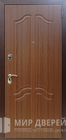 Надежная конструкция из оцинкованной стали толщиной 2 мм с цельным гнутым полотном и коробкой обеспечивает высокий уровень прочности и долговечности, а три ребра жесткости и противосъёмные блокираторы делают дверь максимально устойчивой к взлому. Для сохранения тепла и тишины используется пенопласт или минеральная вата, дополненные тремя контурами резиновых уплотнителей E+D, которые защищают от сквозняков и влаги. Дверь входная уличная утепленная №29 отделана плитами МДФ в коричневом цвете, что придает ей стильный и универсальный вид, подходящий для любого интерьера или фасада. Возможность выбора направления и типа открывания делает конструкцию удобной для установки в разных условиях. Два надежных замка — сувальдный Просам и цилиндровый Мосрентген — обеспечивают достойный уровень защиты, при желании их можно заменить на более современные модели, включая электронные умные замки. При необходимости дверь можно дополнить зеркалом, стеклопакетом, коваными элементами, а также установить видеодомофон и изготовить доборы или наличники в цвет отделки.